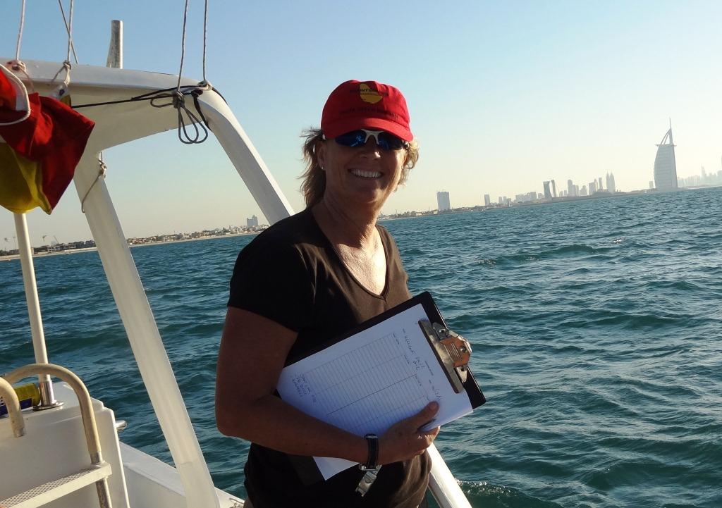 On Saturday Mark and I got to participate in our first Dubai Offshore Sailing Club event. I called ahead and talked to Rachel in the sailing office, who was happy to sign us up for race committee on Saturday which was the final day of this three-day regatta. Although we would have loved to be racing, we figured that being race committee would give us an overview of the whole fleet. That turned out to be oh, so true, as I was assigned to the start boat in the big boat fleet and Mark was assigned to the dinghies.